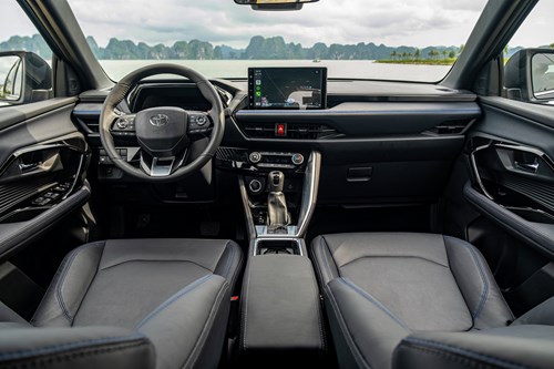 Yaris Cross sở hữu không gian nội thất rộng rãi được trang bị nhiều tiện ích phong phú, hiện đại. Kính trần xe toàn cảnh với tấm che nắng điều khiển điện, đèn trang trí khoang nội thất với tùy chọn màu sắc và cường độ sáng theo sở thích của chủ nhân góp phần làm tăng trải nghiệm thú vị cho khách hàng.