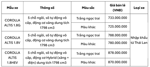 (*) Mức giá trên đã bao gồm 10% VAT và được áp dụng đối với mẫu xe Toyota Corolla Altis mới xuất hóa đơn từ ngày 04/10/2023.