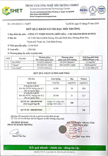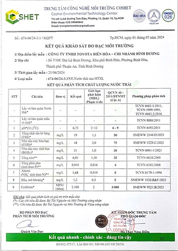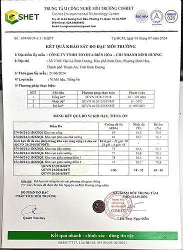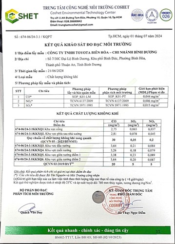Vì những yếu tố trên Toyota Biên Hòa và CN đã cố gắn hoàn thành tốt các tiêu chuẩn của để có được Giấy Phép Môi Trường và luôn tuân thủ theo pháp luật.